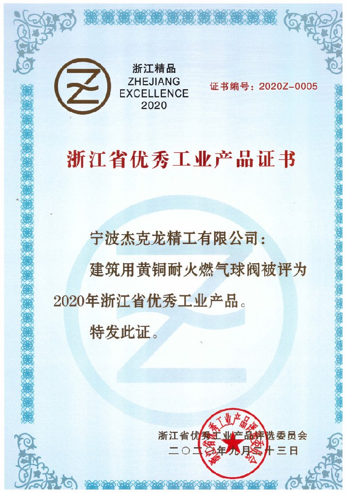 浙江省優(yōu)秀工業(yè)產(chǎn)品證書
